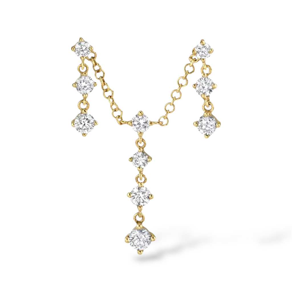 Elevate your style with Cosmic Drip - the ultimate statement piece. Featuring a double piercing and dripping diamonds, this accessory will surely turn heads and spark conversations. Stand out from the crowd and add a touch of luxury to your look.