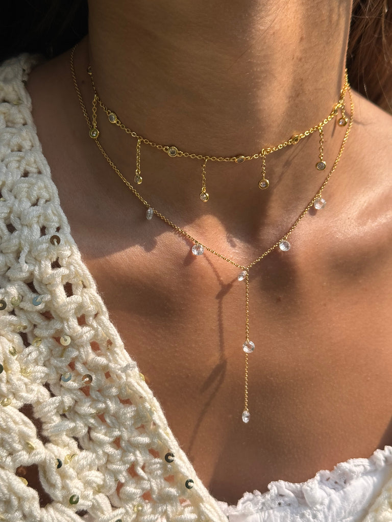 The Drizzle Necklace effortlessly combines elegance and sophistication to create a truly unique and statement-making piece. Crafted with meticulous detail, it is sure to beautify any neck it graces, leaving you feeling euphoric in its presence.
