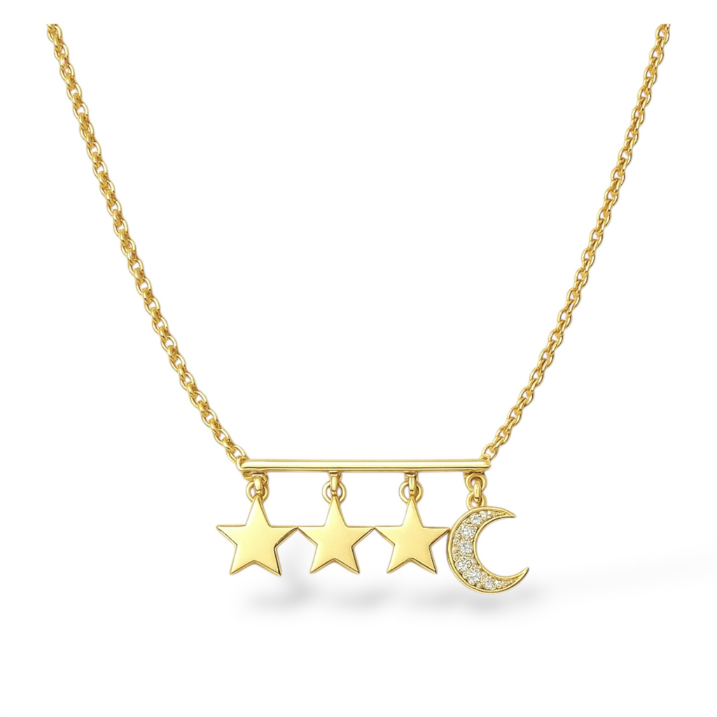 Elevate your style with our StarPath Necklace. Delicately crafted with twinkling stars and a glowing moon, this necklace will add a touch of celestial charm to any outfit. Perfect for those who love a subtle, yet eye-catching accessory. Let the stars guide your fashion choices.