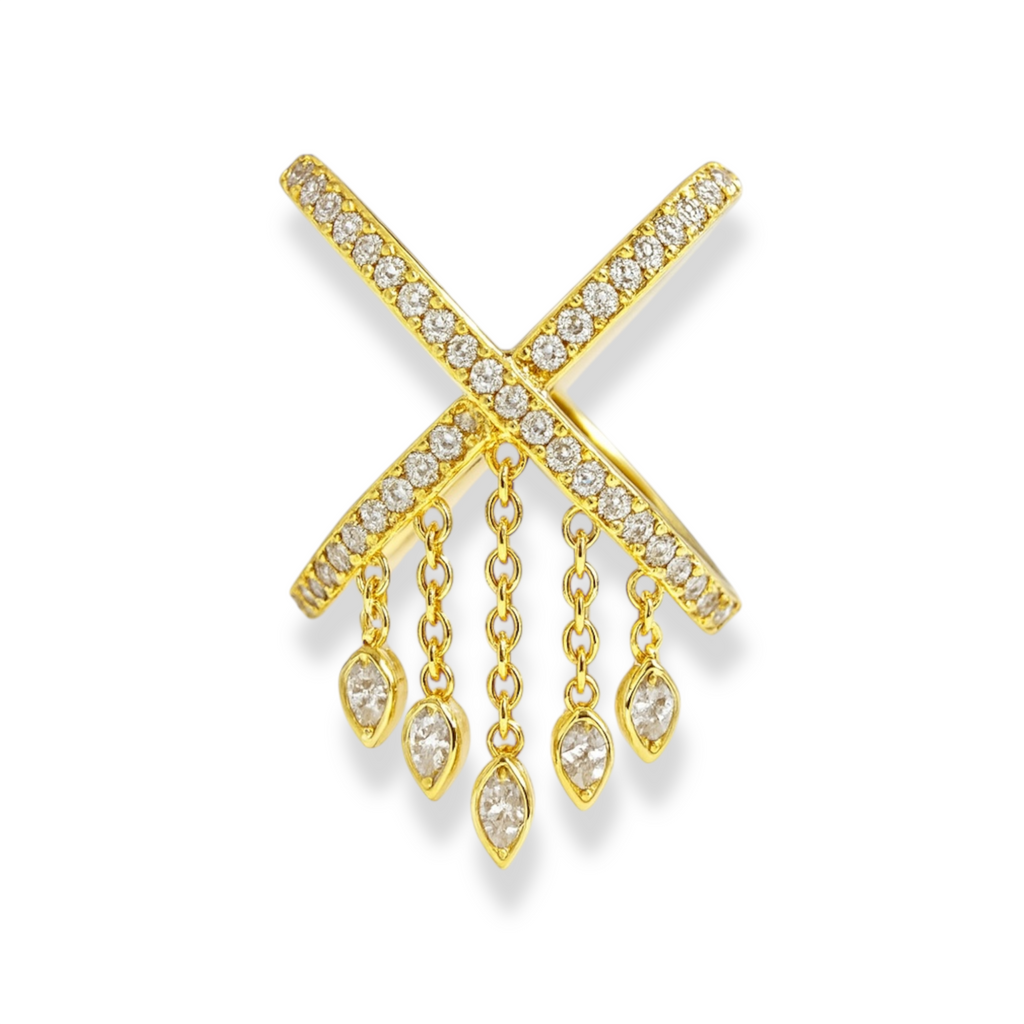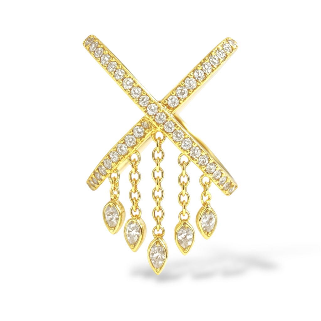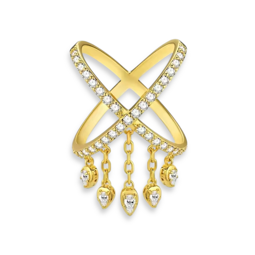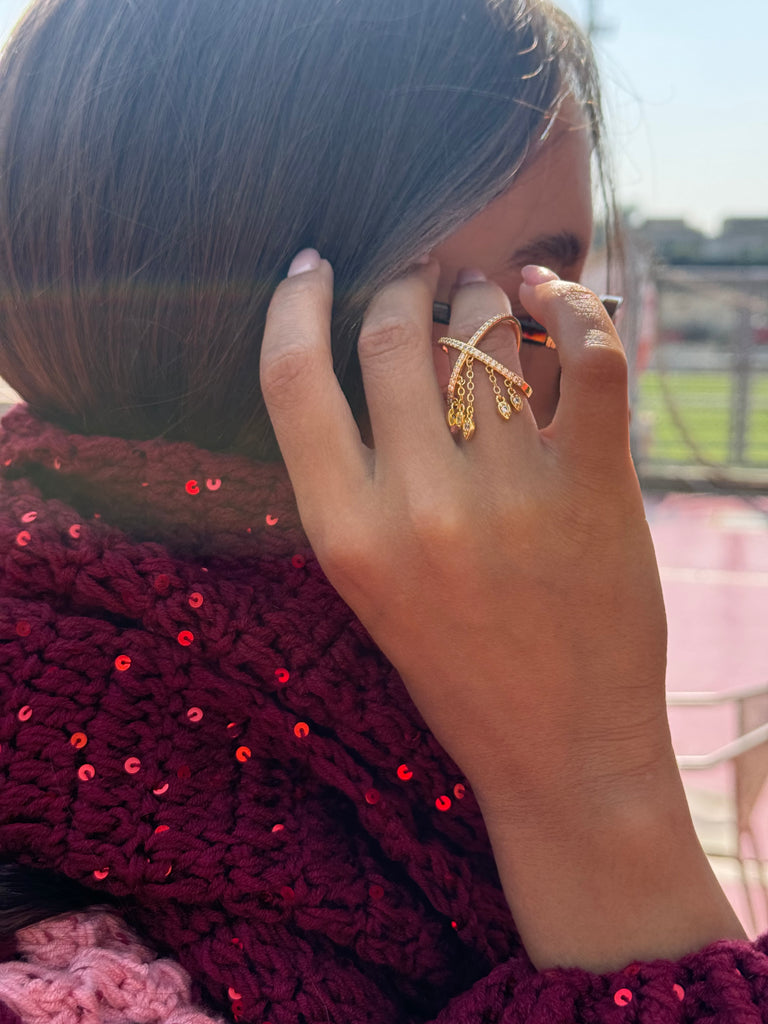 The Drizzle Ring is a stunning statement piece that brings the beauty of rainfall to your jewelry collection. Expertly crafted with sparkles that mimic the glistening effect of rain, this ring is sure to catch the eye of any onlooker. Perfect for adding a touch of elegance and uniqueness to any outfit.